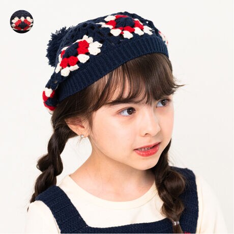 かぎ針編みモチーフを使ったベレー帽・帽子。moujonjonらしい元気な配色のかぎ針編みベレー帽は、とっても目を惹くトレンドアイテム!てっぺんに付いた大きなボンボンがお子様の可愛らしさを惹きたてます♪手洗いでの丸洗いOKも嬉しい!同じかぎ針編みモチーフを使ったベスト&ロンTセット(M62801)とのコーデがおすすめです!【アイテム】雑貨 カジュアル お洒落 オシャレ かわいい 可愛い 普段着 デイリーウェア お出かけ 子ども こども 女児 女の子 ガールズ キッズ ベビーサイズ 幼稚園 保育園 通園 旅行 2024年秋冬物新作 丸高衣料 プレゼント ギフト 赤ちゃん服 ベビー服 贈り物 コン ネイビー 紺色 ムージョンジョン かぎ針編み帽子 クロシェ編み帽子 クロシェ編み クロシェ編みベレー帽