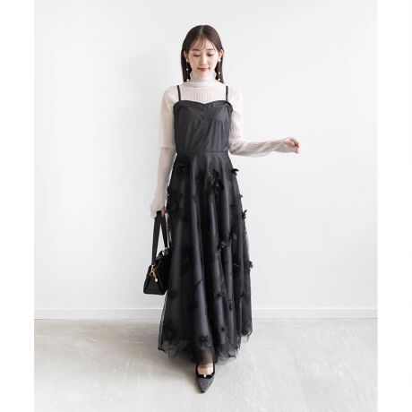 今季トレンドの立体的なフラワーデザインが旬な着こなしを叶えてくれるビスチェワンピース。