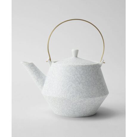 上品な佇まいでありながら、凛とした格調を場にもたらすような存在感を放つティーポットは、岐阜県の美濃焼の窯元で、熟練の職人の手により一つ一つ手作業で丁寧に作られています。表面には、Foo Tokyoオリジナルテキスタイルである“インテリアライク柄”を施しました。