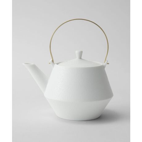上品な佇まいでありながら、凛とした格調を場にもたらすような存在感を放つティーポットは、岐阜県の美濃焼の窯元で、熟練の職人の手により一つ一つ手作業で丁寧に作られています。表面には、Foo Tokyoオリジナルテキスタイルである“インテリアライク柄”を施しました。