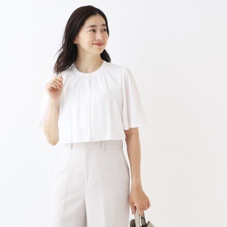 ボトムにあわせインして着て頂くとショート丈ブラウスを重ね着したような見え方になります。