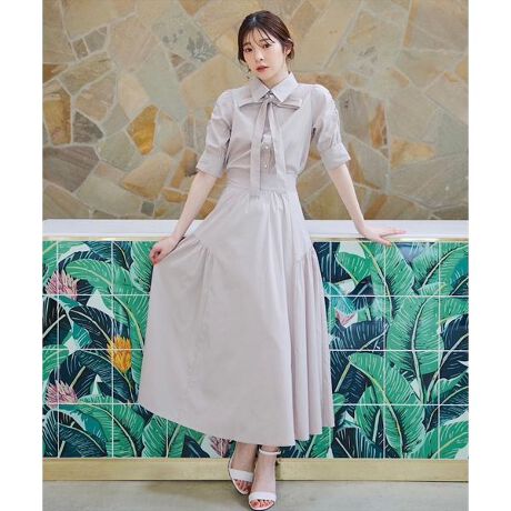 【夏のワードローブに1set持っておきたい、着回し力抜群の定番アイテム】セットアップ着用可能品番 20072411107206 ギャザースリーブボウタイブラウス【Point】・印象的なギャザータックがワンランク上の着こなしに仕立てる、バックレースアップフレアスカート。・セットアップ着用できる、ギャザースリーブボウタイブラウス(品番:20072411107206)と合わせるとワンピースライクな着こなしに。・バックレースアップで体型に合わせて絞っていただくと、よりすっきりとした美しいシルエットを楽しめます。・お出かけにもお仕事にも、万能な着回し力を持ち、幅広いシーンで活躍すること間違いなしの一着です。ケア方法:手洗い可能透け感:なし裏地:あり伸縮性:なし(ウエスト部分:後ろゴムあり)光沢感:なし生地の厚さ:中肉