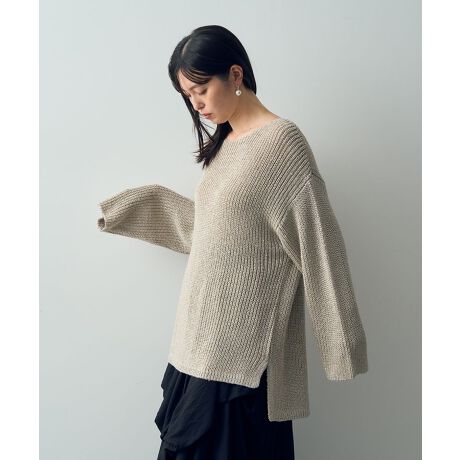 スパンコールを散りばめたトレンド感あるデザインニット。ボートネックにリラクシーなシルエットで上品な雰囲気が魅力です。やや長めのレングスにサイドスリットを入れた前後差のあるスクエアヘムもこなれ感たっぷり。カジュアルコーディネートのアクセントにも最適なおすすめのアイテム。ロンTやシャツなどとレイヤードするのもおすすめです。