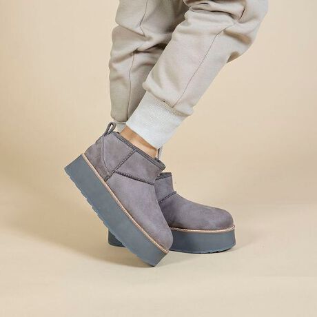 プラットフォームが今の気分にぴったりなムートンブーツ。