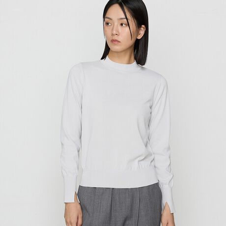 少し高さのあるモックネックは寒い時期にも首元にフィットして、首を温めながらすっきり見え効果が期待できます。