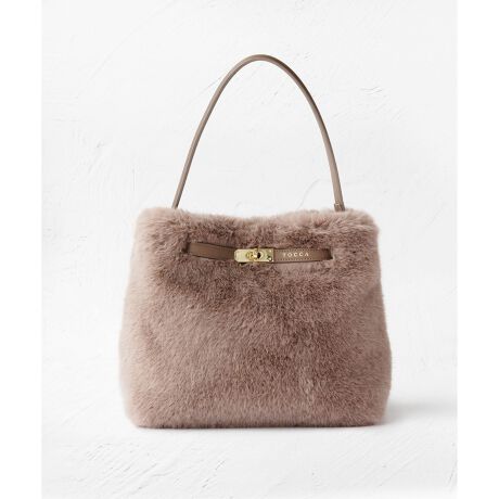 フロントのベルテッドディテールがリュクスなアクセントになったファーバッグ。