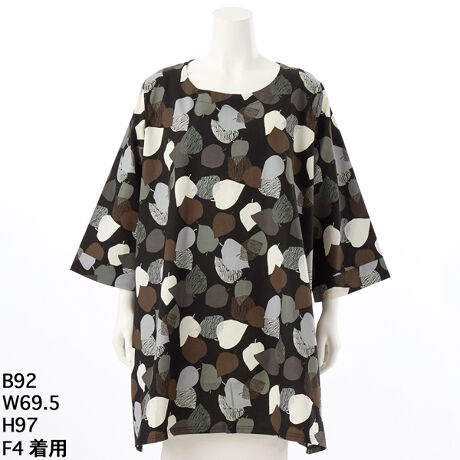 【大きいサイズレディース】コットンオックス地幾何葉っぱ柄チュニック(日本製)