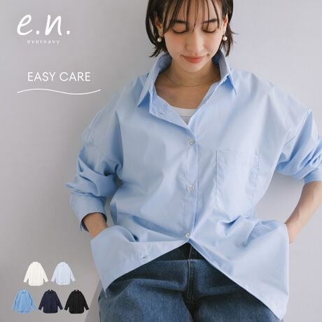 イージーケア オーバーサイズ ドロップ 長袖 シャツ evernavy エバーネイビー