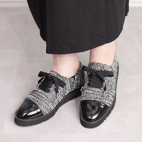 ・マニッシュなローファーにレディな要素をかけ合わせた1足。