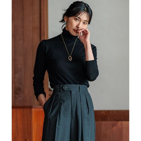 天竺編みで仕立てた、インナーとして最適なシアー感のあるタートルネックプルオーバー。今年は襟部分をリブ編みにアップデート。薄くて肌触りよく、ストレッチ糸を入れることにより着心地を追求しました。レイヤードに大活躍のトレンドアイテムです。CANCLINI ベーシック シャツやVネックのプルオーバーとのレイヤードがおすすめです。カラーは、ホワイト(#001)、ライトグレー(#003)、ブラック(#005)、ベージュ(#033)、イエロー(#040)の5色展開です。