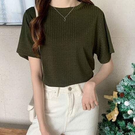 シンプルなむじにリブ素材を取り入れ、質感のあるTシャツに。
