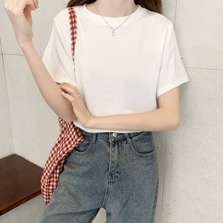 使えるショート丈リブTシャツ。