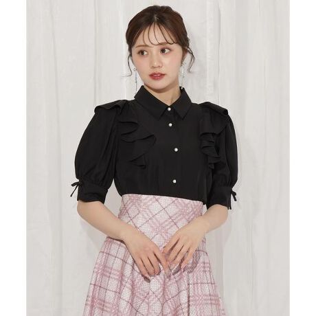 フリル×リボンのスウィート感あふれるスリーブリボンブラウス【Design】・ラッフルフリルや袖の程よいボリューム感で、フェミニンスタイルにぴったりなブラウス。・袖のカットデザインとリボンがアクセントをプラス!・フロントのパールボタンが、より上品な印象をアップさせてくれます。・フレアスカートやマーメイドスカートとのコーディネートでフェミニンな印象にコーディネートするのがオススメ♪・デニムやハイウエストのパンツと合わせてカジュアルダウンさせることも◎・フロントボタン仕様。【Fabric】・柔らかな印象に仕上げてくれる、シワになりにくいポリエステル生地を使用。・ご自宅でお手入れが出来るのも嬉しいポイント♪・ホワイト、ピンク、ブラックの3色展開となります。【Care】洗濯機洗い可能