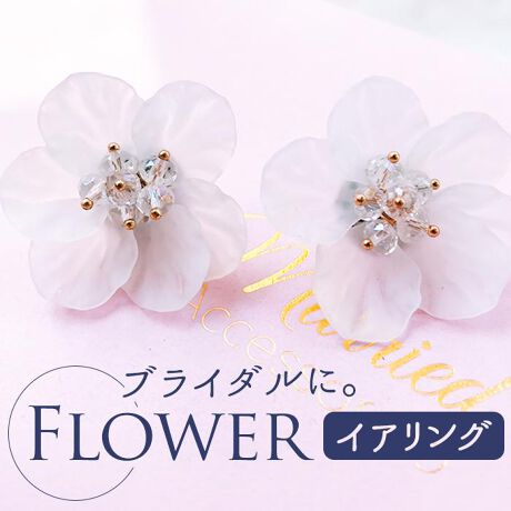 ブライダル イヤリング 花 通販 ブライダルアクセサリー ウェディングアクセサリー 大ぶり 花モチーフ 花型 揺れない 結婚式 花嫁 新婦 披露宴 パーティー 二次会 2次会 前撮り ウェディングドレス clearフラワー E-67 EARRING