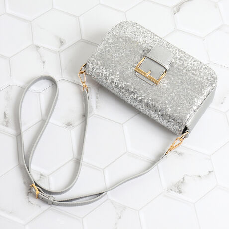 ・今年トレンドのスパンコールが華やかなスクエアバッグ。