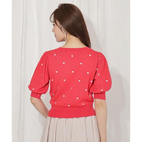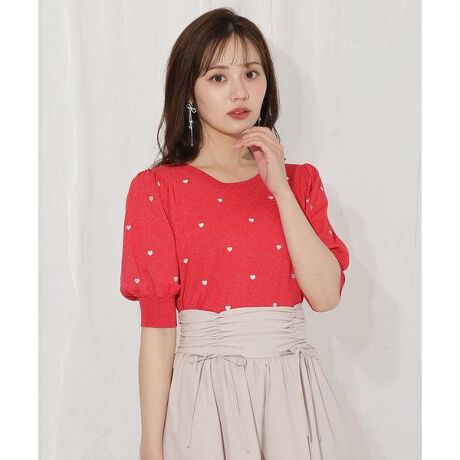 リボンの日(8/8)にちなんだスペシャルプライス!8,888円のニットトップスが登場♪【Design】・小ぶりなハートを刺繍であしらい、どこから見ても可愛らしいプルオーバー。・袖はリブ仕様になっており、袖がボリューム感を演出します。・柄違いのバリエーションニット(リボン)【品番:20082429100059】も要チェック!・コンパクトな丈感なので、ハイウエストデザインのボトムスと合わせてインしてコーディネートしていただくのがおすすめ♪・デニムパンツなどカジュアルなアイテムとの相性も抜群です◎・袖にボリューム感はありつつもすっきりと着こなせるので、ジャケットなどの羽織りものと合わせればロングシーズンお楽しみいただけます。【Fabric】・程よい伸縮性のあるニット生地を使用。・ご自宅でお手入れが出来るのも嬉しいポイント♪・ホワイト、レッド、ブラックの3色展開となります。【Care】手洗い可能