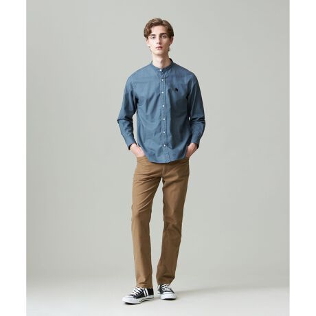 製品染めで独特なカラーが特徴のバンドカラーシャツ