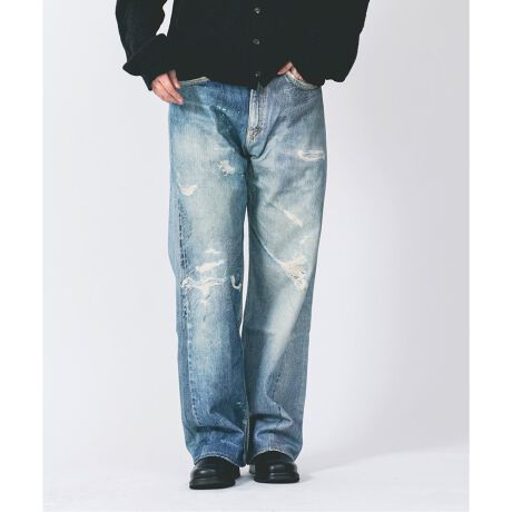 ヴィンテージデニムを参考にしたデジタルプリントにより、使い込まれたお気に入りの一本のように見えるデザイン。