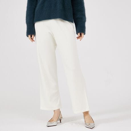少し膨らみのある合繊素材を使用したニットパンツで秋にぴったりの品。