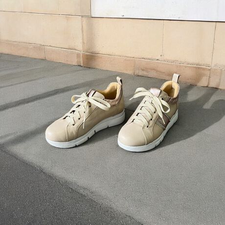 カジュアルになりすぎず、足元を華やかに仕上げてくれます。