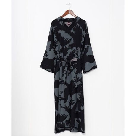 [型番:7CQ-4304-2024]「彼岸花」「鴉(からす)」「鬼灯(ほおずき)」柄を、現代的な色彩で大胆に描いたワンピース。着物風羽織はもちろん、ジャンパー等のカジュアルなジャケットと合わせても、スタイリッシュな和洋折衷の雰囲気が楽しめます。両サイドポケット付き。