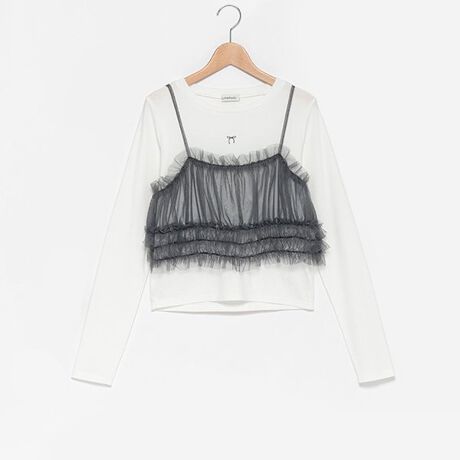 上品で大人っぽい雰囲気を与えるチュール素材を使用したビスチェと長袖のセットです。