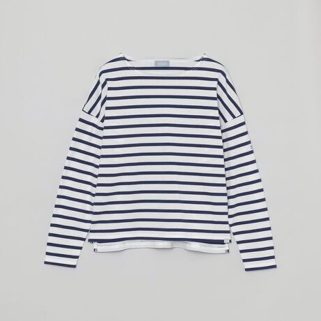 コットン素材を使用した定番ボートネックプルオーバー。袖に配したロゴがポイントです。体の線を拾わないゆとりを持たせたシルエットはリラックスして着ていただけます。ワイドパンツや、動きのあるロングスカートにもさらりと合わせて頂きやすい一着です。