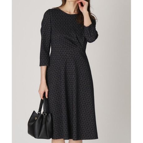 24年秋冬はダブルジャカードジャージ素材を使用し、さりげないラメが上品でエレガントな雰囲気のワンピースです。
