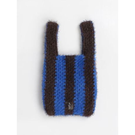 コントラストの効いたストライプが目を引くハンドバッグ。