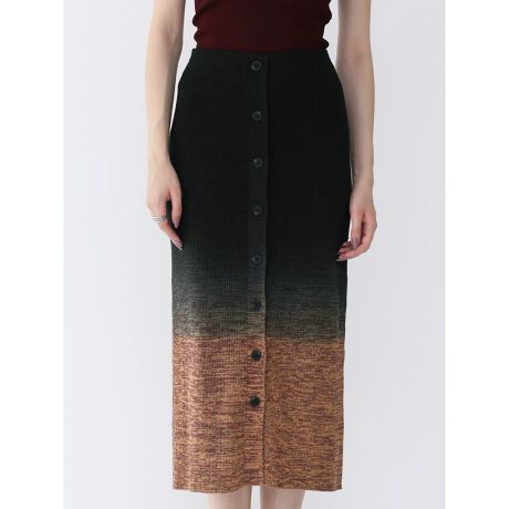 トレンドのグラデーションカラーを用いた、リブニットスカート。目を惹く色合いに表情の増すミックス感とが相まり、一層印象的な佇まいに。女性らしさを感じるシルエットもモードなルックスで着こなすことのできる一着です。