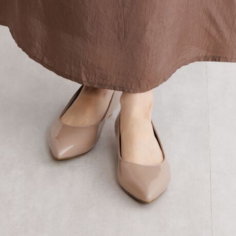 ローヒールながら足をすっきりとみせてくれるカットラインが美しいパンプスです。