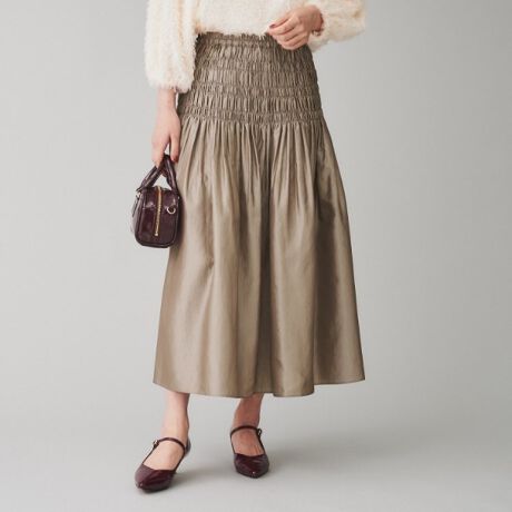 【Liyoca】シャンブレータフタ ギャザープレススカート