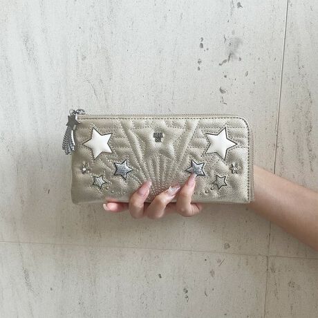 初めてL字ファスナーの長財布を購入しました。ゴールドのキラキラが綺麗で、星がポップな感じでかわいいです。