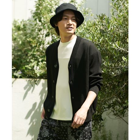 【KAITEKI+】イージーケア ドライリップル ボタンカーディガン