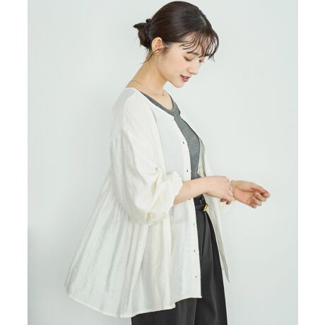 前後2wayで着られるだけでなく、ボタンを開ければライトな羽織としても活躍するマルチな一枚です。