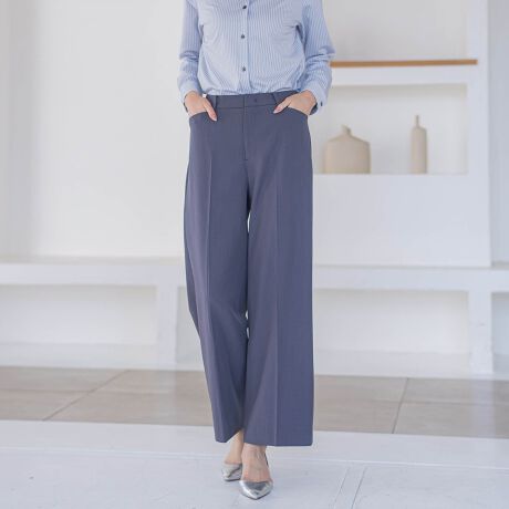 【大きいサイズ】ドライギャバストレッチワイドパンツ≪洗濯機で洗える/セットアップ対応≫