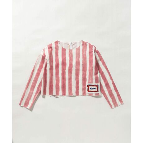 MARNI(マル二)Kids & Junior ワンポイントノーカラーストライプシャツ