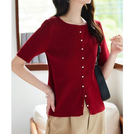 パールのボタンも可愛く、ほんの少しVに1番上がなっていてスッキリ見えて良い
