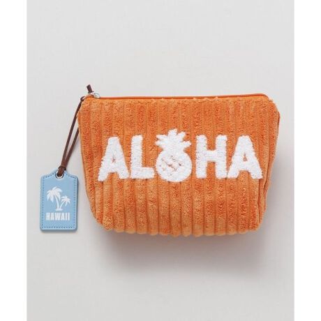 [型番:42VP4302-2024]カラフルな色がハワイらしいポーチ。温かみのあるもこもこ具合が魅力の太めコーデュロイ素材。ラゲッジタグを模したチャームがポイント。ミニトートとお揃いや、色違いでセットで使うのもおすすめ。