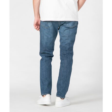 経糸は三本精紡交撚紙を使用し、毛羽の無く光沢のある濃色インディゴ染を採用。緯糸にはEDWINジ−ンズの生産工程で出される「裁断クズ」やお客様から回収された不要になったジ−ンズを反毛し作られたオリジナルストレッチ糸を採用。EDWIN503もコンセプトにサスティナブルをプラスしたデニム素材。モモ回りに多少のゆとりがあり。膝から裾にかけてテ−パ−ドするフィットは細過ぎない履き心地でありながら、すっきりとした見た目が特徴。