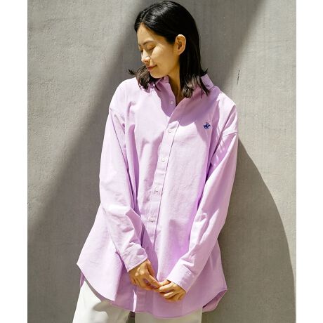 ◆胸にブランド刺繍が入った、オーバーシルエットで無地とストライプのシャツになります。
