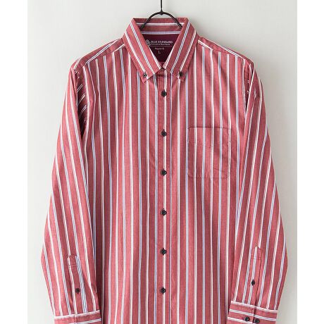 【BLUE STANDARD】ラクケア イージーケア ツイルストライプボタンダウンシャツ