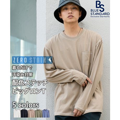 【ZEROSTAIN】ビッグシルエット ロンT カラーステッチ 配色ステッチ