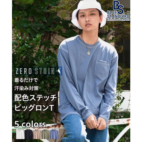 【ZEROSTAIN】ビッグシルエット ロンT カラーステッチ 配色ステッチ