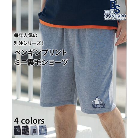 【BLUE STANDARD】別注 ペンギンプリント ミニ裏毛 ショートパンツ