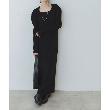 見た目は布帛素材のきちんと感を持ち合わせており、着用感はニットのようなストレスフリーで1枚で着易いストンとしたIラインシルエット。