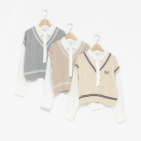 ニットベストレイヤードブラウス