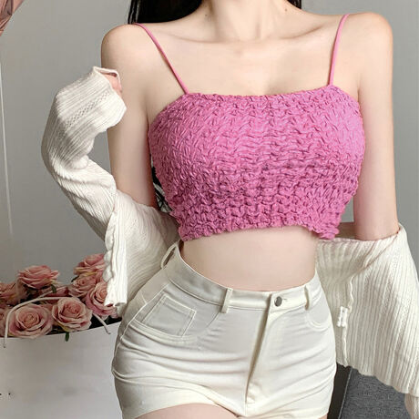 シャーリングデザインのショート丈キャミソール