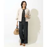 秋らしいきれいめな濃色デニムのワイドパンツが新たに登場。腰回りはすっきりと、太ももまわりから裾にかけてゆとりを持たせたシルエットになっています。配色の閂止めやステッチワークでポイントを持たせつつ、コーディネートしやすいシンプルなデザインにこだわりました。深いカラーのデニムは秋のコーディネートをスタイリッシュに仕上げてくれるアイテムです。硬すぎない生地感なので穿き始めも楽に着用いただけます。
