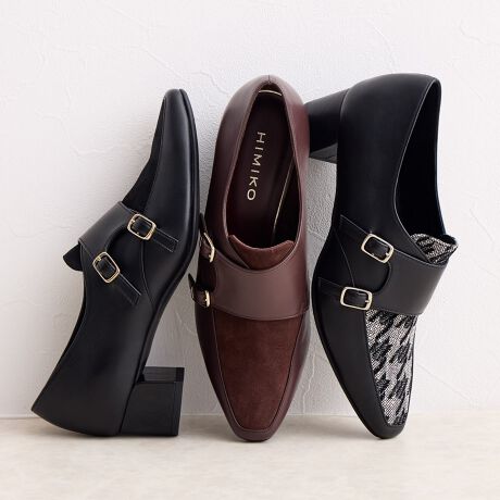 メンズライクなディティールをすっきりとしたシャープなスクエアトゥに落とし込み、ヒールアップさせることで上品な女性らしい雰囲気に。